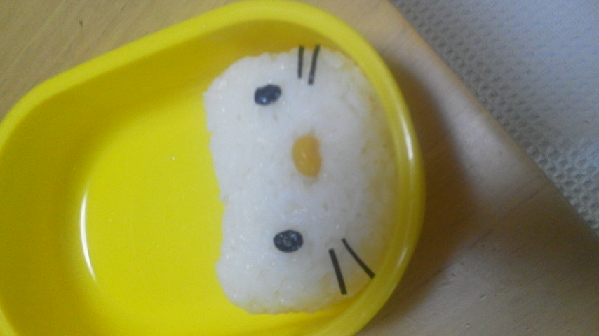 ちょっと耳が大きくなった&ご飯が冷めきってなくて海苔が縮んだけど、目鼻立ちのバランス取るのはそう難しくはなかった。