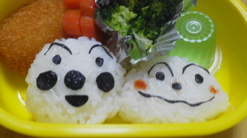 アンパンマンはもっと何回も作ってるんだけど、初期はあんまり写真撮ってなかったのがちょっと悔しい。私的には、鼻と頬を輪切りウインナーで作ったやつが一番アンパンマンらしくなったと思ってたんだけど。
