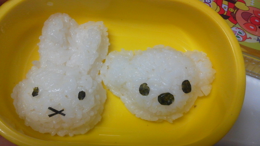 あとは、手抜きシリーズの型押しおにぎり。ミッフィーとボリス。