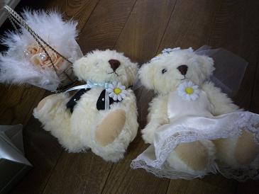 記憶の中で美化されてたか・・・。まあ、式前日に1時間くらいでガーッと作ったもんだし、思い入れは少ない。捨てよう。ベアは時間掛かったんで、一応取っておこう。でも私は本当に捨て魔なんで、あと何年かしたら捨てるかもしれない。ベアは鼻の刺繍に失敗して、ちょっとブサ顔になった物だし。