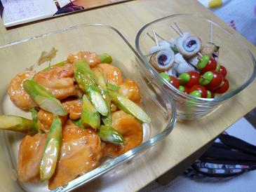 久し振りに義母の気遣いの空回りっぷりに巻き込まれて、イラッときた。まあでもイラッときたからって作りたくないとは言えない。夕方近くまで出掛けてたんでバタバタと準備して、エビマヨ、しば漬けとシソのちくわ巻き、マイクロトマトと枝豆を適当に爪楊枝でぶっ刺したやつをタッパーに詰めて持って行くことに。
