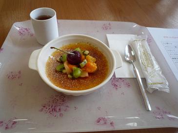 なかなか凝ったおやつが出てきた。さつまいものブリュレだそうだ。洋菓子店のようなクリーミーなブリュレではないけど、さつまいものほっとする甘味がおいしかった。ちゃんと砂糖を焦してパリパリにしてあるし。