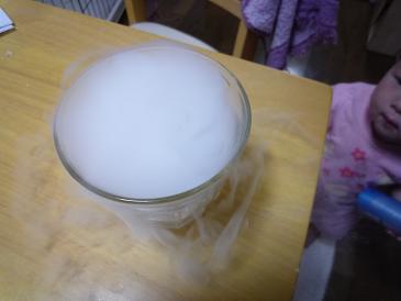 余談だけど、「モンブラン」は保冷剤がドライアイスだった。暇だったんで、水に入れて遊んでみた。