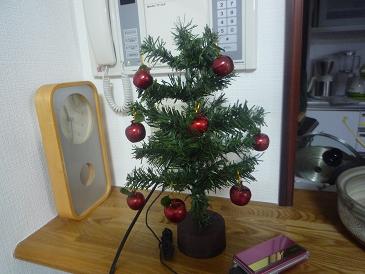 ツリー105円、りんごのオーナメント105円。りんごのオーナメント、去年ぴよさんがキャンドルで開けちゃったからお買い上げしたんだけど、残しておいて良かった。ショボいながら、ツリーは飾れた。