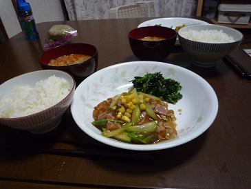 たくさん野菜いただいたんで、少しずつ味わわせていただこう。今日は海老と豆腐のハンバーグ野菜あんかけとほうれん草のおひたし、野菜スープ。トマトは生で食べてもおいしそうだったけど、体を冷やす食べ物なんでこの時期は温トマトで。温トマトの方が栄養が吸収されやすくなるって何かの本で読んだ気がする。