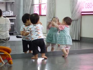 ぴよさんは、こーくんと鏡で遊んだり・・・