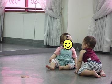 体験教室はベビーサインの概念と、ベビーサインを通したエピソード、ベビーサインをしてる赤ちゃんのDVDを鑑賞、簡単なベビーサインを教わって、ふれあい遊びをちょっとやって終了。母達が先生の話を聞いてる間、赤さんらは自由に放牧。