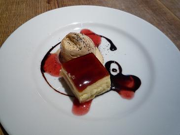 りんごケーキとフリ・・・なんとか?何だっけな?ムースとジェラートの間みたいなのって説明された奥側のコレ、何度も黒板に書かれたメニューを確認して覚える努力をしたけど結局覚えられなかった。でもおいしかった~♪ デザートは+150円で安いな~と思ったけど、量が少ない!凄くおいしかったからもっとガッツリ食べたいのに、量が上品すぎるよ。3倍くらいのサイズで食べたい味なのに。