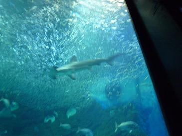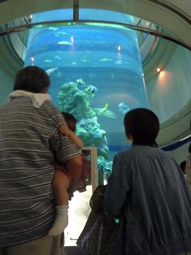 マリンワールドに行けば涼しいかなって思ったんだけど、水族館内は予想以上に蒸し暑い。さらに、結構混雑している。両親はゆっくり見ることはなくサクサク進む。大水槽だけは多少ゆっくり見てたかな。
