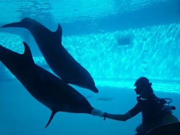 イルカが飼育員の人に懐きまくってるとこを堪能した後は、アシカ・イルカショー。だけど会場はひときわ蒸し暑い。間もなく父がギブして、もうホテル行こうってことになった。イルカがジャンプしたりするとこが見たかったのに、見れなかった。年寄りはレジャー施設には、連休の時に来るもんじゃないな。ぴよさんがもうちょっと大きくなるまでお預けかな。