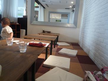 という素晴らしいお店らしい。テーブル席と座敷の両方があるけど、テーブル席にはベルト付きハイチェアがあるとか。テラスには遊具があって、遊ばせられるとか。店内に授乳室やオムツ替えの台があるとか。とにかく 子連れにとって天国 らしい。
