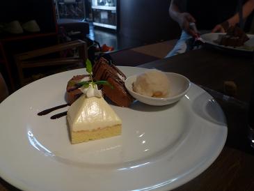 楽しいケーキタイムは、私とましゅさんが「ほうれん草とにんじんのシフォンケーキ」、Kさんとメグリズムさんが「デザート三種盛り」を注文。