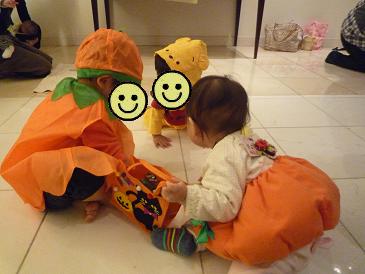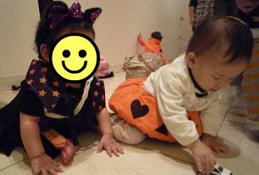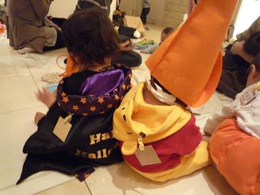 20組近い親子が参加してたんだけど、仮装が色々でみんな可愛かった。ぴよさんの衣装は昨日のかぼちゃパンツを履かせ、トリックオアトリートで使ったバッグを持たせたんだけど、地味だったかもしれない。
