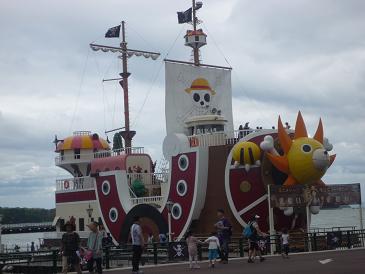 そんなハプニングを乗り越えて、一番奥の『ONE PEACE』ゾーンまで歩く。父親が何度かへばりそうになってたけど「適当にどっかいていいよ」「ゆっくり来てていいよ」と言っても頑なについてきた所を見ると、やっぱりテーマパークで別行動は無理っぽい。仕方なく、ゆっくり歩く。