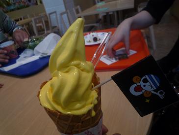 ローとキッドがいたショップの中には『ONE PEACE』レストランがあったから、そこで休憩する事に。私はナミをイメージしたみかんのソフトクリームを、妹はゴーイングメリー号のムース。