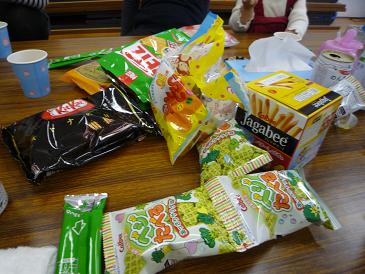 どさっとな。お菓子係は私だったんだけど、ケーキもあるんだからそんなに多くはいらないだろうなと思いつつ、誰がどんなお菓子が好きなのかよくわからないんで結局色々買ってきた。一応、個別包装の物ばかり。チョコは子供が心惹かれない落ち着いたパッケージを選んだのが、私的心遣い。