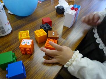 ご飯の後はざっと片付けて、子供達にプレゼントのアンパンマンブロックを渡す。やっぱりみんな、食いつきがいい。アンパンマンは偉大だな~。ぴよさんもブロックを繋げたり離したり、高く積んだりして楽しそうだった。