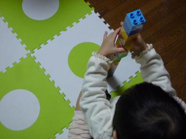 このブロック。接続が弱くて、小さい子でも遊びやすい。ぴよさんはこれを、とにかく上へ上へ繋げるのが楽しいらしい。