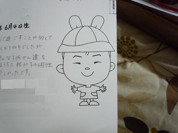 そっくりではないけど大体こんな顔で、変に可愛らしくせずにシンプルに描いてくれてるのがいい。でも、ちょっと不満だったとこを若干訂正させてもらった。しっかし自分の字がコピーされてるのを見ると、下手さに凹むな。ちなみに内容は、宇宙は膨張してるとかなんとか書いてます。嘘だけど。