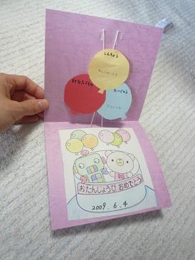 ぴよさんは今月誕生日なんで、今日の育児サークルではバースデーカードがもらえた。