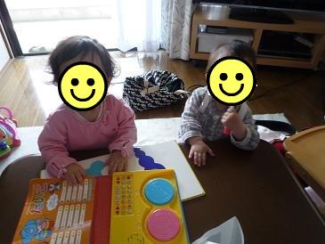 ララちゃんとぴよさんはまだまだ「一緒に遊ぶ」なんてできない歳だけど、こうやってると 「一緒に遊んでる風」 に見える。