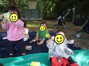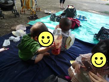 子連れピクニックとはいえ、全員1歳未満。一緒に遊べるはずもなく、てんでバラバラなんだけどそれぞれ楽しそうで笑える。