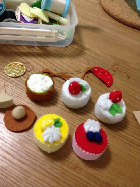 久し振りに物作りがしたい気分だったんで、ずっと前に作ろうと思って材料揃えただけで放置してたフェルトのミニケーキを作った。