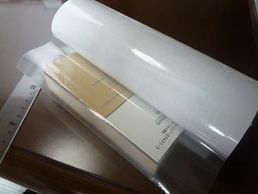木工ボンドが乾いたら、次はカバーを守るためにフィルム掛け。