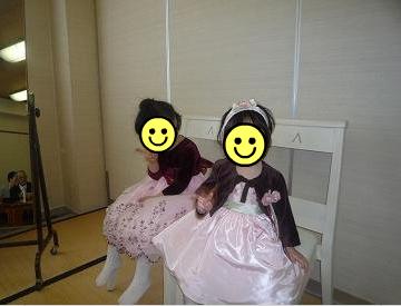 こんな感じで完成。右がぴよさんで左は姪その3。姪その3のドレスは私の結婚式の時に姪その2が着てた物。たまたま似たような出で立ちになったけど、その分連れだって歩く姿は可愛かった。問題は顔が・・・いやいや、子供だから顔立ちの事は許される!うん。
