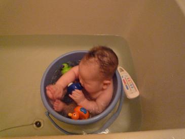 そんな中、今週から旦那サンがちょっと遅くなるとか。仕方なく、夜はぴよさんと一緒にお風呂。というわけで、久々にぴよさんinバケツ