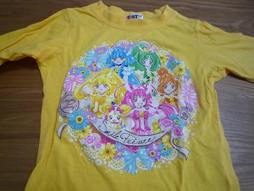 義母は、義父母宅専用服をワンシーズン毎に数着買う。必ずちょっと大き目を買って、それがジャストサイズになると我が家に渡す。そしてまたちょっと大き目を義父母宅専用服として買う。この「ちょっと大き目」主義はプリキュア服にも適応され、今のぴよさんより10cm大き目の服。でもこの服に描かれてる「スマイルプリキュア」は、来年2月で終わる。ぴよさんが成長してこの服をジャストで着れるようになる頃には、とっくに終わってるだろうな。