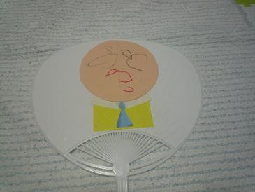 今日の育児サークルは「父の日制作」。父の日のプレゼントを作ろうってやつで、父親の顔を作って白地のうちわに貼ろうという物。