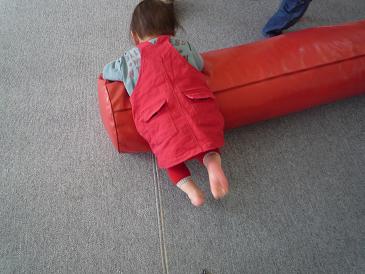 ぴよさんが一番ハマってたのは、スポンジの入った長い筒。つかまって、転がる。