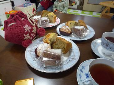まっくろくろすけさんから有名ケーキ店のシュークリーム、pたんさんから手作りのバナナケーキとチョコケーキ、そして不肖ワタクシのミルクティーシフォンケーキ。どれもとっても美味しかった。自画自賛入っちゃってるけど。
