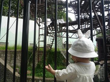 結局こうなる。歩かせると、どうでもいいとこで立ち止まったり止まりたいところを素通りしたりで大変なんだよなぁ。でもやっと、ぴよさんが楽しそうな表情を見せ始めた。動物はあんまり見てくれないけど。