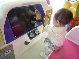 思いの外、真剣に遊び始めたんでびっくり。ハンドルをひたすら回していた。時々横のボタンを押すんだけど、やっぱりすぐにハンドルを回す。何が面白いのかなぁ・・・。