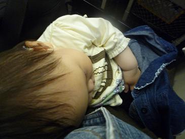 ダラダラ長居をし、「おかあさんといっしょ」「いないいないばあ」を見てからおいとますることにした。行く時にカンカン照りに照らされ、Sちゃんちではおもちゃで遊びまくって昼寝しなかったぴよさん、バスに乗ると一瞬で寝た。いやー、楽しかったね、ぴよさん。