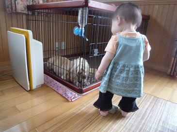 ↑うちにあるのと同じ手押し車なんで自分のと思いこんじゃったぴよさん、Hちゃんが掴まってるのに自分ペースでどんどん動かしてHちゃんを泣かしちゃったの図。「あたしはまだ、そんなに早く歩けないの~」ってとこか。ごめんね、Hちゃん。