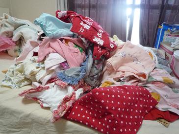ぴよさんの服の9割8分は、兄のとこの娘達が着ていた服を譲り受けた物。押入れの奥から「80」と書いた段ボールを引っ張り出して、夏服だけポイポイとベッドの上に放り出してたけど・・・。