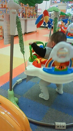 おもちゃコーナーに行って、「ベビーフォレストジャングルパルー」ってやつに乗せてみる。