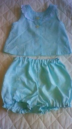 「作って欲しい物があったら言ってね」、「ここをこうして欲しいとかあったら言ってね」としつこく言われてるけど、そうだねー。ちょうちんブルマみたいなズボンの股のところがフックで開閉できるようになってると、オムツ替えがしやすいかな?そういう風に作れるかなぁ。旦那サンから言ってもらおう。