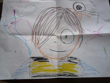 大雨のせいで参加者は少なくて、14組くらい。くじによるチーム分けで、私はCチームになった。アンパンマンキャラのゲームの後、お題を出されて何も見ずに絵を描いて上手に描けたチームが勝ちってゲームがあったんだけど、私のお題は「ゲゲゲの鬼太郎」。